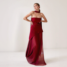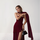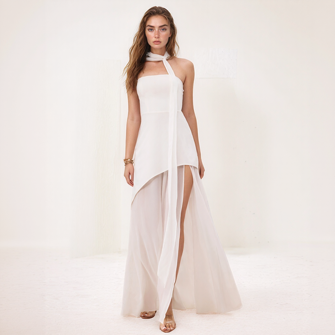 Nelly | Dlouhá Elegantní Šaty – Asymetrický Střih A Integrovaný Šátek