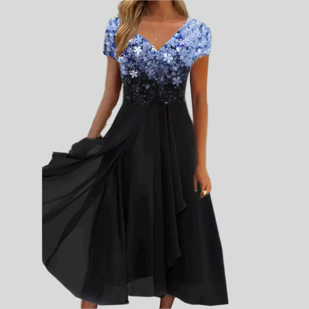 Αυτή η μεσογειακή φόρεμα διαθέτει έναν μοντέρνο floral σχεδιασμό, ιδανικό για διάφορες περιστάσεις. Διαθέσιμη σε πολλές συνδυασμούς χρωμάτων, προσαρμόζεται σε όλα τα στυλ. Σχεδιασμένη για να προσφέρει άνεση και κομψότητα, είναι ιδανική για ηλιόλουστες μέρες.
