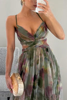 Αυτό το μακρύ φόρεμα διαθέτει μία εκθαμβωτική καλλιτεχνική εκτύπωση που παραπέμπει στη φρεσκάδα και τη θηλυκότητα. Η ρευστή του γραμμή αναδεικνύει τη σιλουέτα ενώ ακολουθεί τις κινήσεις σας με χάρη. Ελαφρύ και ευχάριστο στην κατανάλωση, είναι τέλειο για ηλιόλουστες μέρες και καλοκαιρινές εκδηλώσεις.
