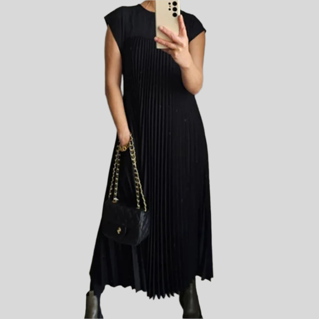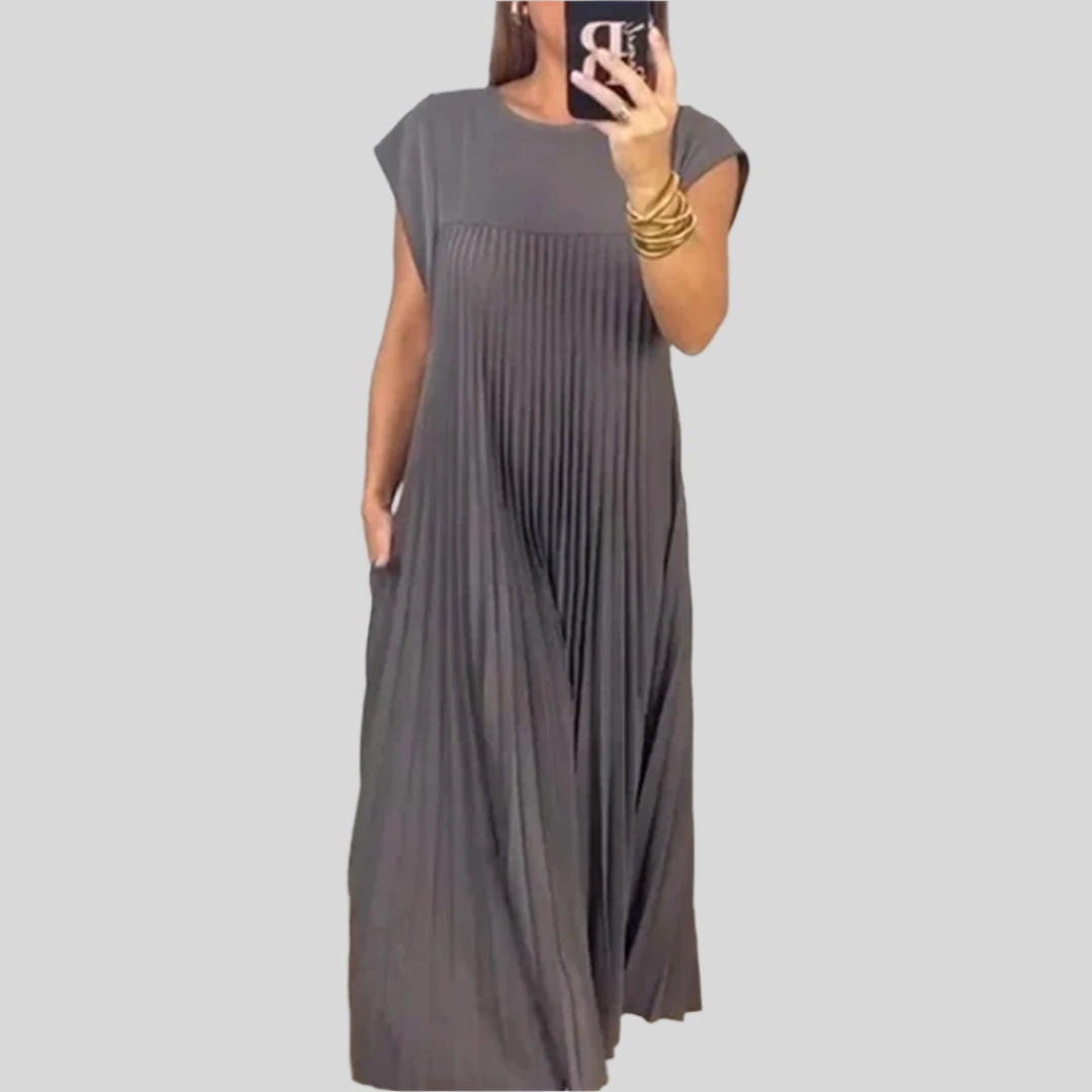 Este vestido plisado ofrece una silueta favorecedora. Disponible en varios colores, se adapta a todas las ocasiones. Su diseño intemporal asegura una elegancia duradera.