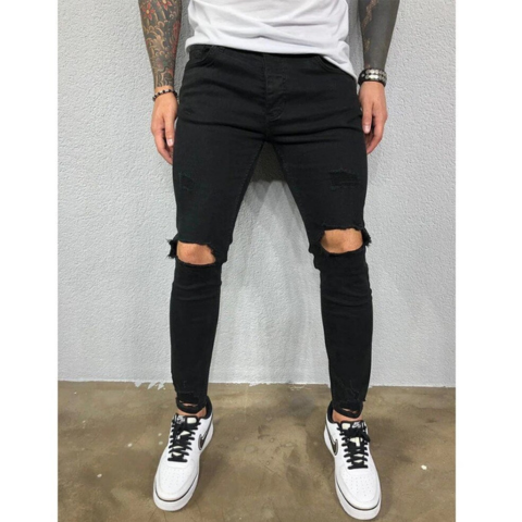 מכנסיים קרועים אלו מציעים גזרה מודרנית וצמודה. זמינים בצבעים כחול ושחור, הם מתאימים בקלות לכל outfit שלכם. מושלמים למראה נינוח ומגניב.