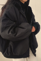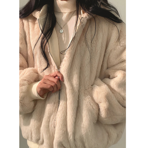 מעיל זה מתבלט בעיצובו ההפוך, מציע צד אפור בהיר עם מראה חלק וצד שנהב עם מראה יותר נפוח. כל צד מציע מראה שונה: אחד לסגנון מינימליסטי, השני למראה יותר עטוף ומרקם. החיתוך הקצר, הכובע המובנה והנפח הנדיב שלו הופכים אותו לפריט אידיאלי לימים קרים שבהם את רוצה לגוון את הלבוש שלך מבלי לשנות בגדים.
