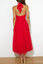 איה | שמלה מיני-ארוכה אלגנטית עם צווארון גבוה וגב חשוף