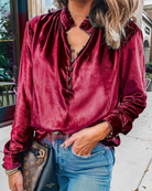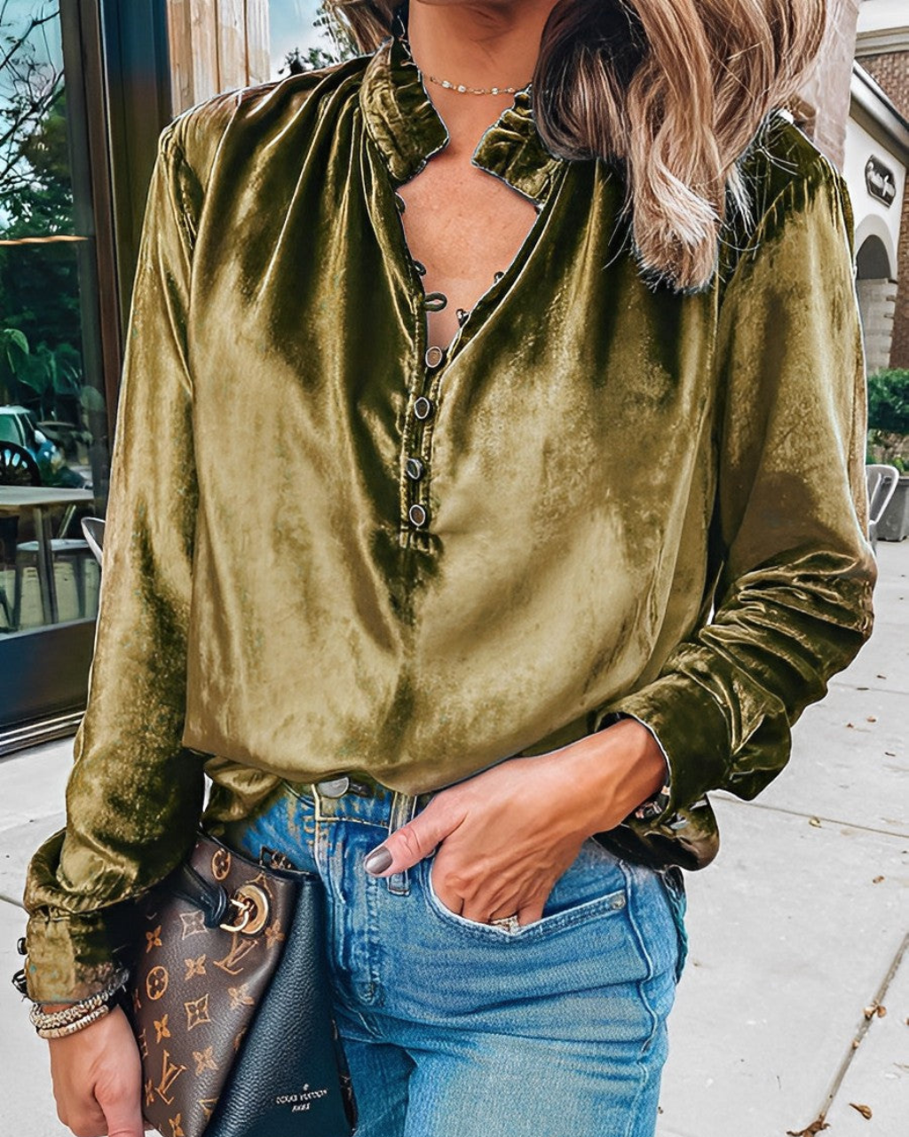 ויויאן | חולצת נשים אלגנטית – צווארון מקומט וכפתור אופנתי