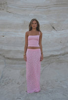 Blandine | Insieme Rayé Rosa – Top Senza Spalline E Gonna Lunga