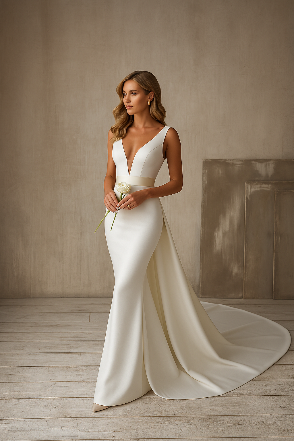 Leïla | Abito da Sposa Lungo Con Scollatura A V Senza Maniche E Strascico