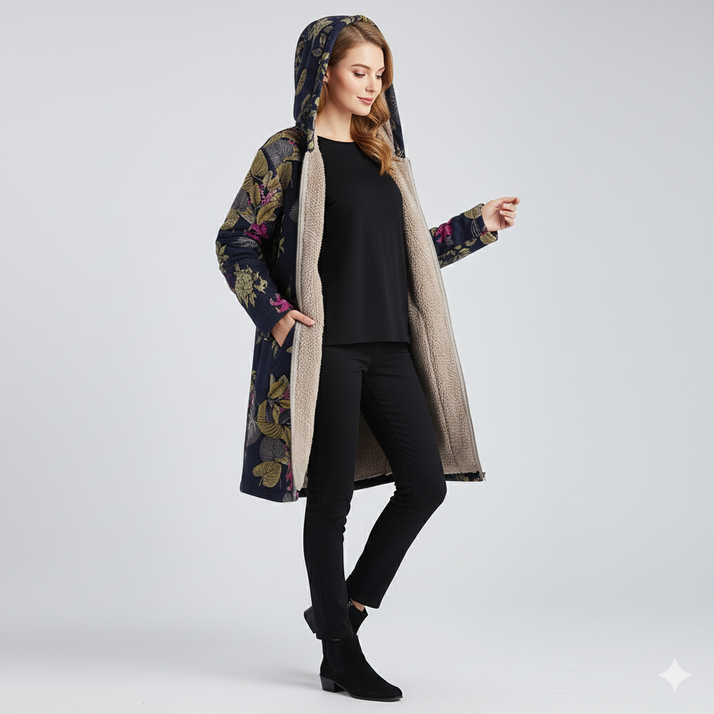 サナエ | フード付きウィンタージャケット 女性用 — 柔らかな暖かさと花柄スタイル