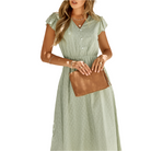この軽やかな夏のドレスは、魅力的なVネックとロマンティックなフリル袖を備えています。流れるようなシルエットが、一日中快適さを保証します。街のお出かけ、ブランチ、バケーションにぴったりです。
