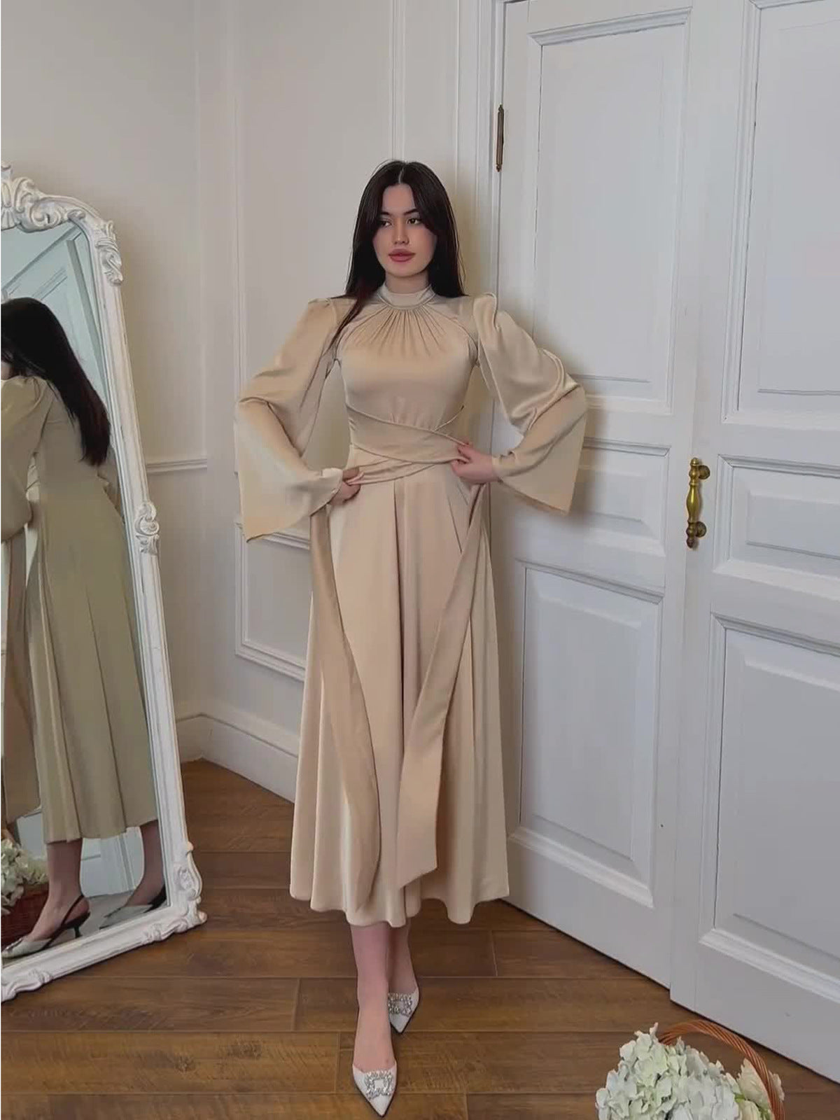 Velia | Abaya Kjole Beige – Søt og Moderne Allure