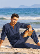 Dette herreantrekket kombinerer stil og velvære. Bestående av bukser og skjorte, er det ideelt for solfylte dager.