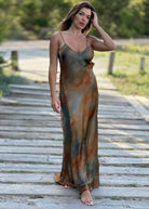 Ta długa sukienka w kwiaty urzeka swoim wzorem inspirowanym fauną, cienkimi ramiączkami i eleganckim odkrytym plecami. Jej zwiewny krój i satynowe wykończenie zapewniają optymalny komfort, idealna na słoneczne dni i letnie wieczory.